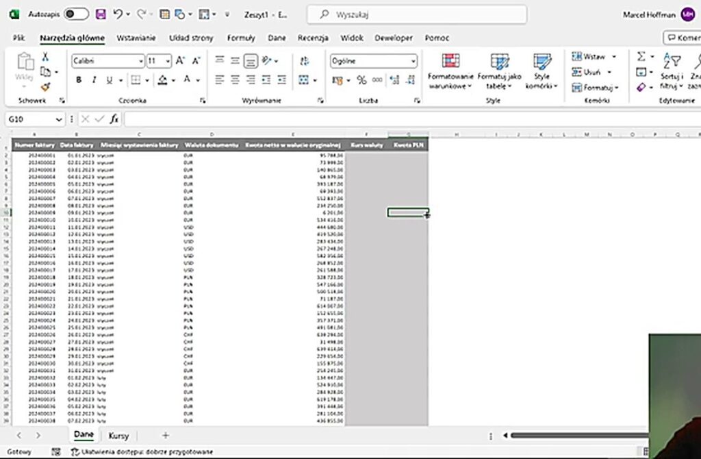 Zestawienie faktur z walutami w Excelu